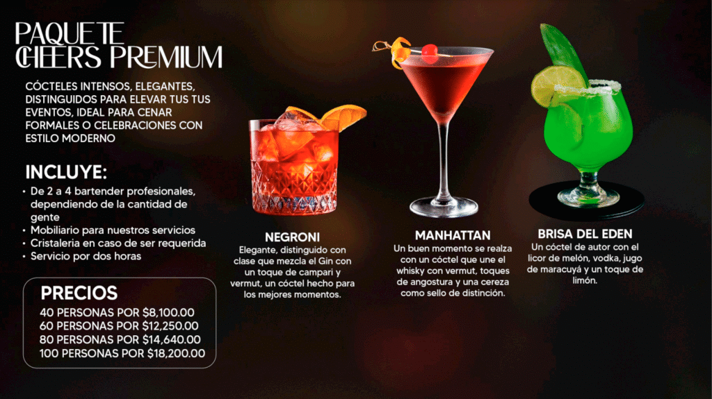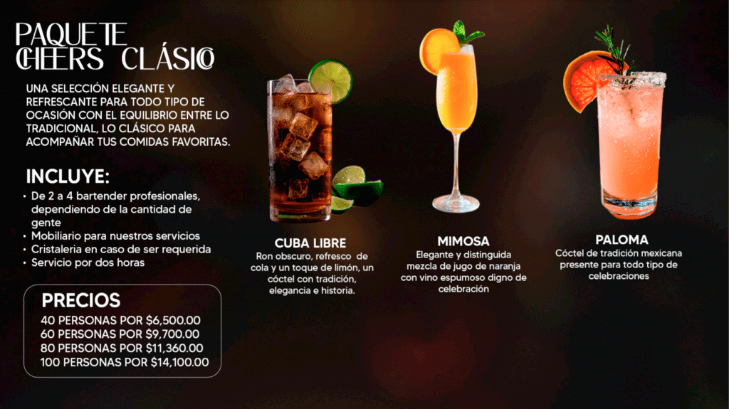 En Cheers Coctelería, creamos experiencias únicas con cócteles personalizados para cada ocasión.